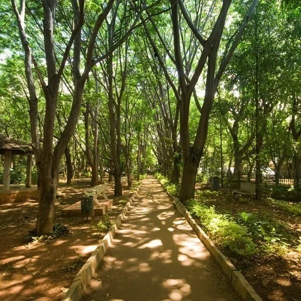 The Jamun is an elegant and spacious house set among the green lanes of Bangalore. Each bedroom has an en suite bathroom and Wi-Fi access. The common spaces include a living area, dining room, breakfast nook, shaded garden, terrace, and the Sangam House library.